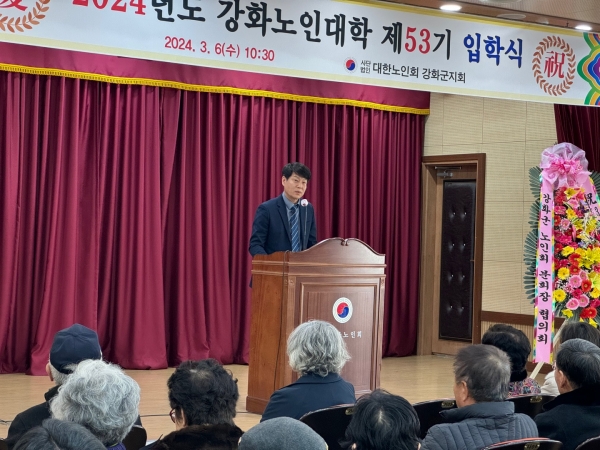 [금요저널] 강화군이 6일 대한노인회 강화군지회 주관으로 ‘제53기 노인대학 입학식’을 개최했다고 밝혔다.