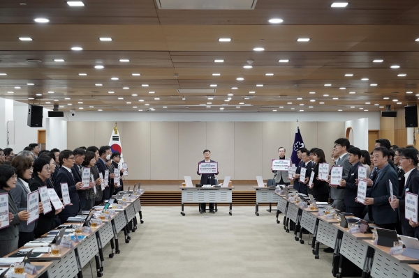 이날 확대간부회의에서는 신상진 시장을 비롯해 4급 이상 간부 공무원들과 출자·출연기관 대표들은 올 한해 실천할 청렴 메시지를 직접 작성해 다짐하는 ‘청렴 실천 다짐’ 선언을 진행했다.