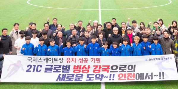 인천광역시 서구체육회는 지난 5일 서곶근린공원에서 국제스케이트장 유치를 위한 기원 행사를 열었다.