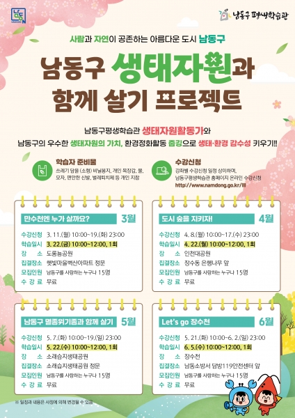 ‘남동구 생태자원과 함께 살기 프로젝트’학습자 모집