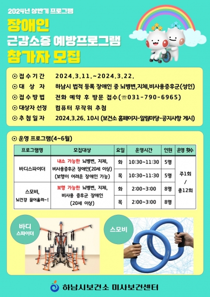 시 관계자는 “장애인의 근감소증 예방의 중요성을 알리고 양질의 재활서비스를 제공함으로써 장애인의 자가 건강관리 능력이 향상될 것으로 기대한다”고 전했다.