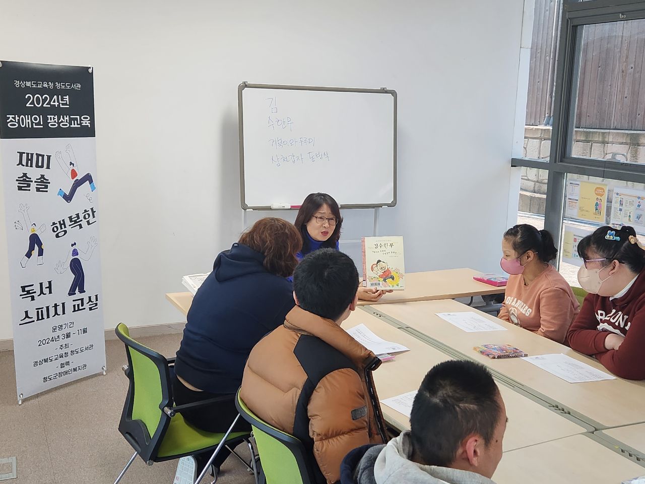 장애인 평생교육프로그램은 청도군장애인복지관과 협력하여 책을 활용한 융·복합적인 독후활동 뿐만 아니라 신체적인 활동도 함께 구성하여 정서적·사회적 능력을 향상시키는데 중점을 두었다.