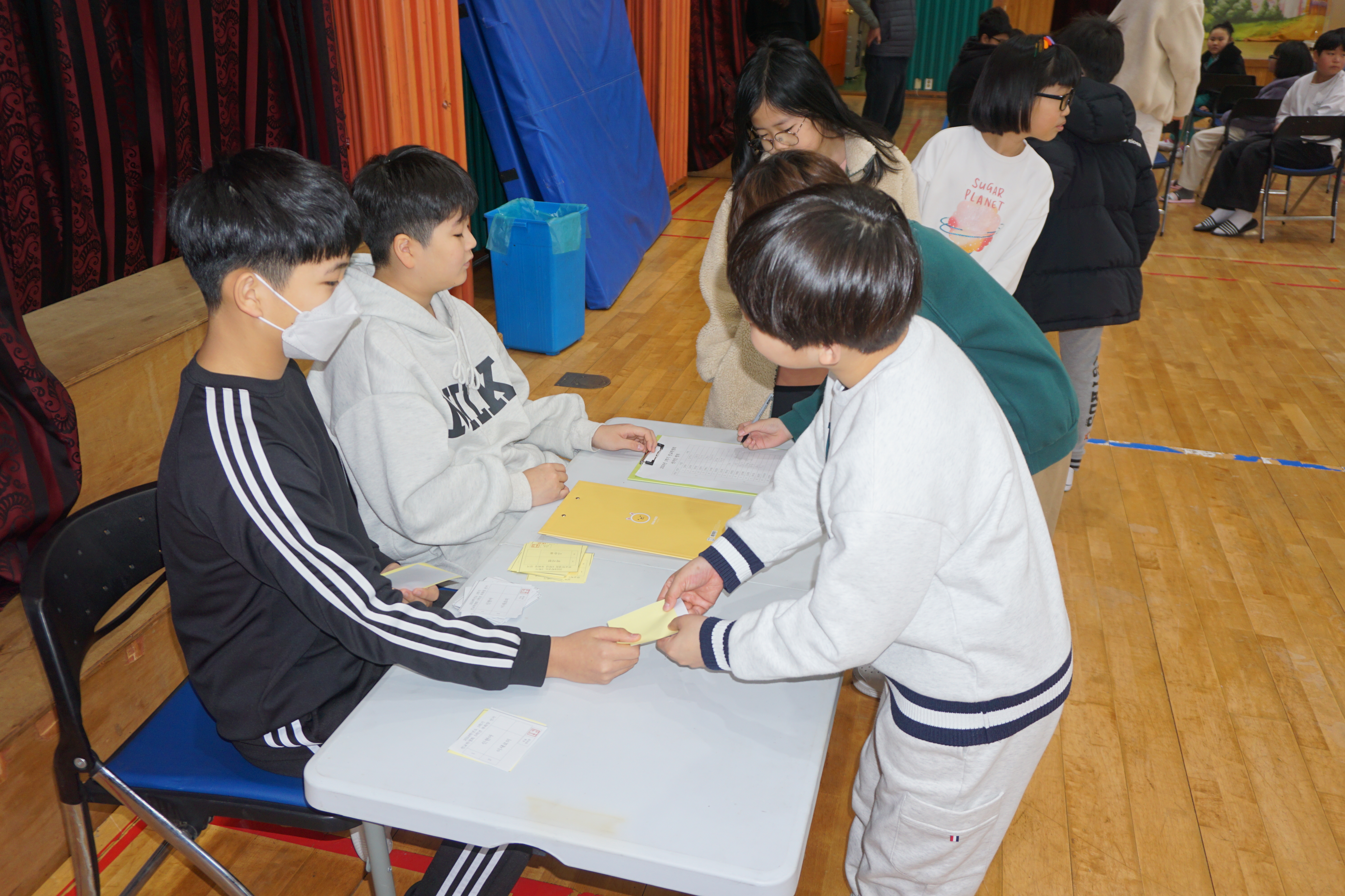 □ 3~6학년 학생들이 전교학생회 임원 투표에 참여했으며 학생들이 선거관리위원이 되어 모든 선거 과정을 진행했다. 전교학생회 회장, 부회장에 입후보한 5명의 후보자들은 자신의 소견을 자신 있게 발표했으며 학생들은 후보자들의 소견을 들으며 2024년 1학기 동안 학교를 위해 봉사할 전교학생회 임원을 선출하였다.