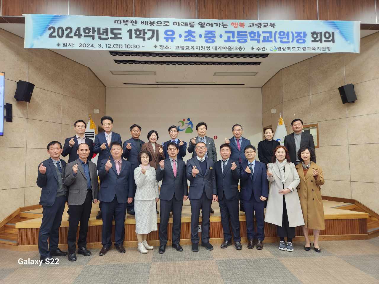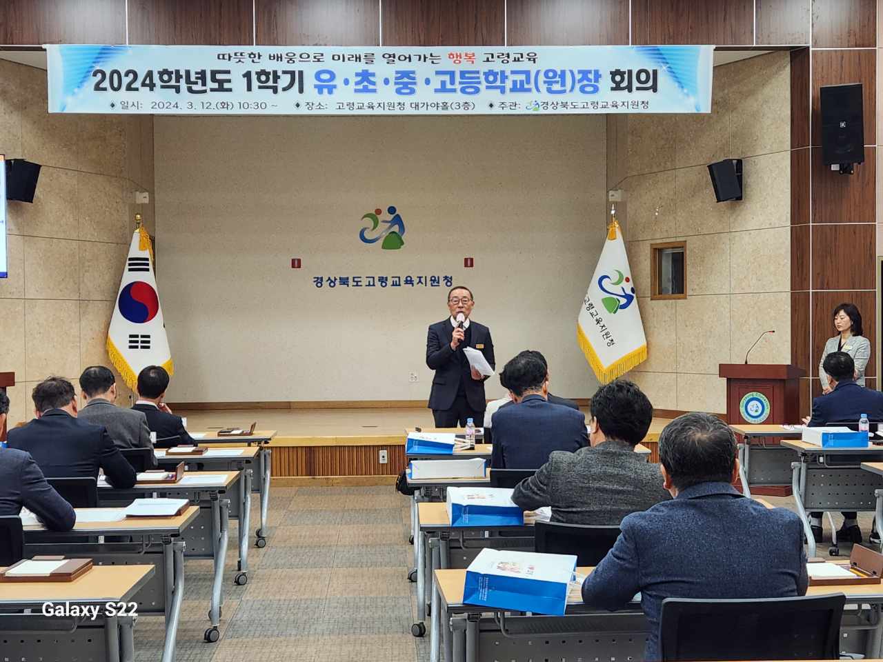 경상북도고령교육지원청(교육장 김호상)은 3월 12일 (화) 10:30부터 고령교육지원청 대가야홀에서 관내 유·초·중·고등학교(원)장 17명과 교육지원청 관계자 10여명이 참석한 가운데 2024학년도 교육과정 운영을 위한 학교장 회의를 개최하였다.