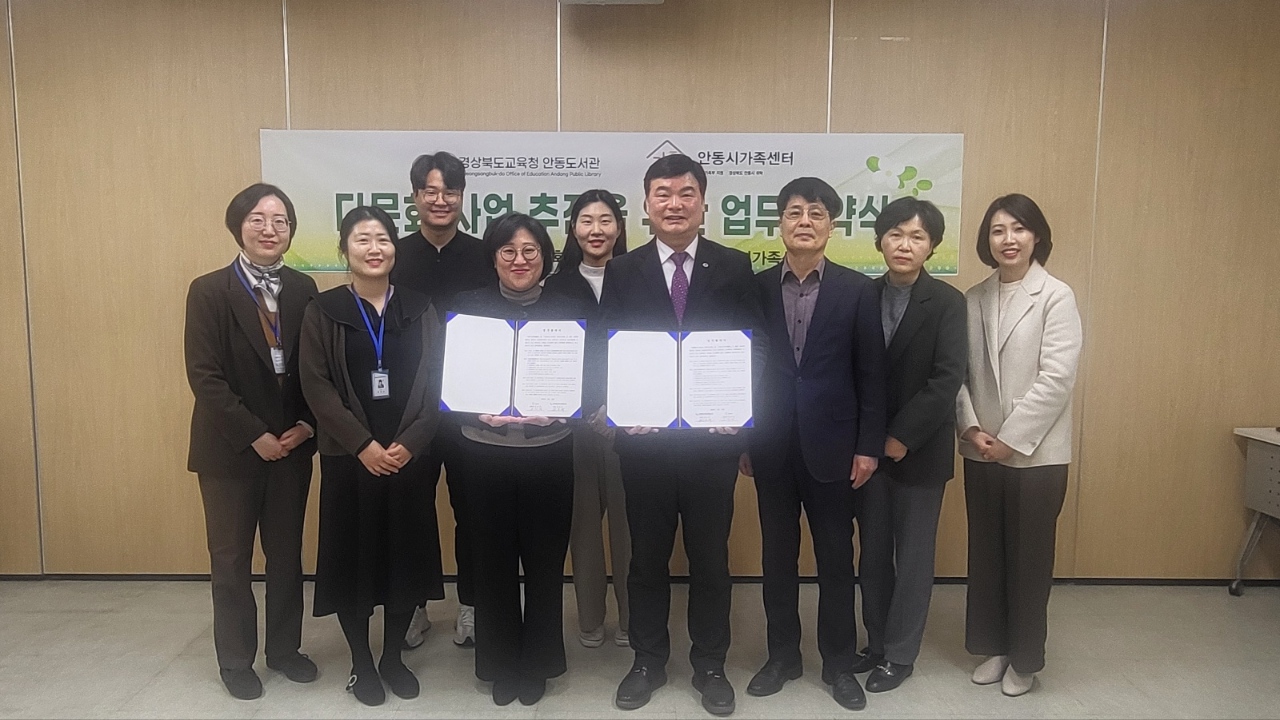 □ 경상북도교육청 안동도서관(관장 권오규)은 3월 12일(화) 11시 안동시가족센터와 다문화가족 지원 사업을 위한 업무협약을 체결하였다.