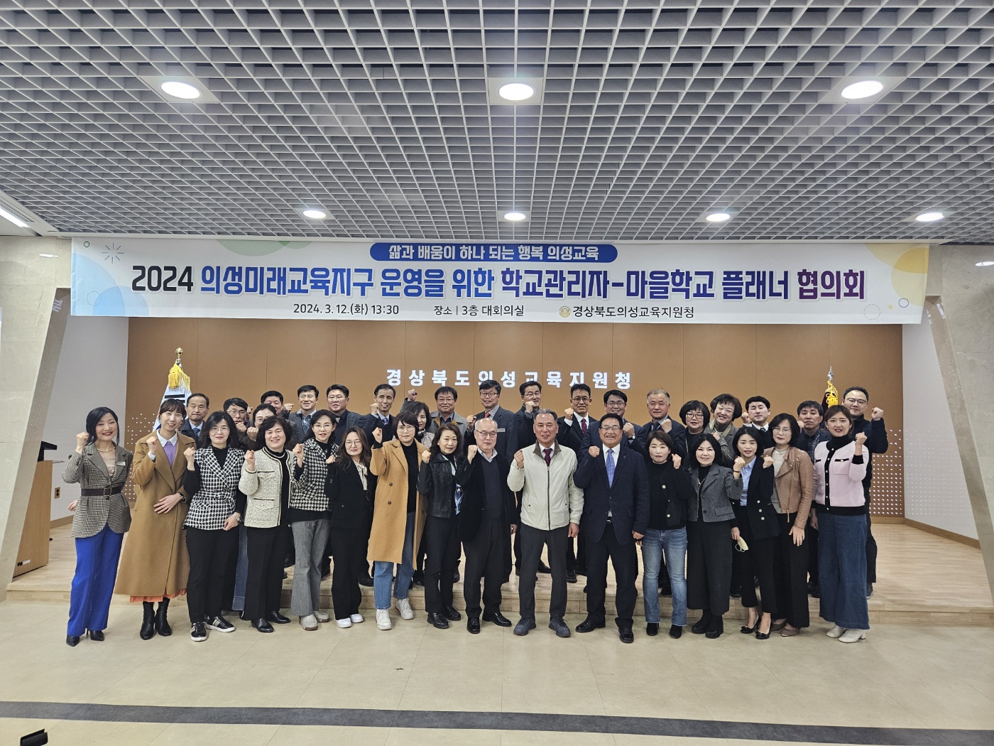 경상북도의성교육지원청(교육장 박명호)은 3월 12일(화) 오후 1시30분부터 오후 3시까지 의성교육지원청 3층 대회의실에서 약 40명의 학교관리자 및 마을학교 플래너가 참석한 가운데‘의성미래교육지구 운영을 위한 학교관리자-마을학교 플래너 협의회’를 개최하였다.