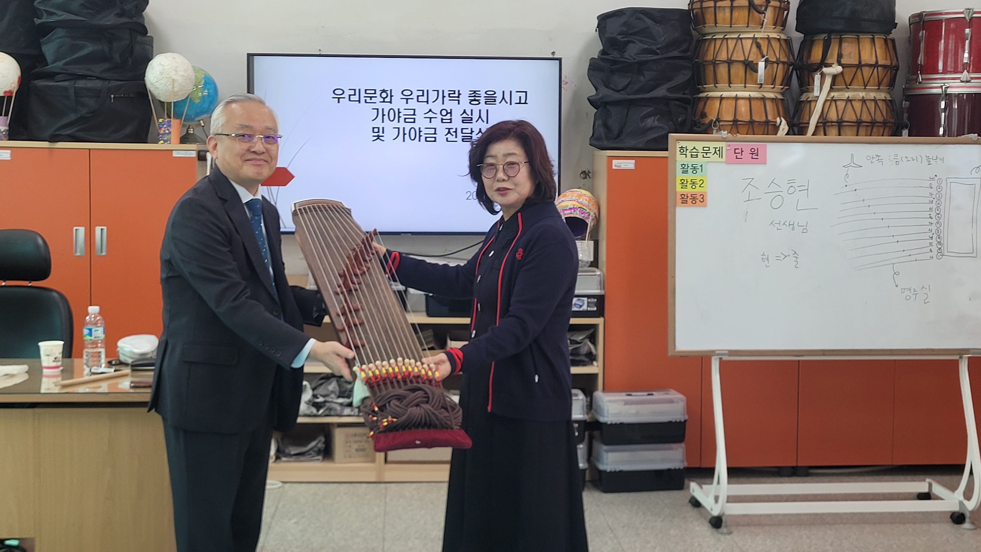 □ 영덕교육지원청(교육장 윤인한)은 3월 14일 지역의 전통예술문화 활성화의 일환으로 시작되는 가야금 수업을 실시하며 이를 위하여 가야금을 전달하였다.