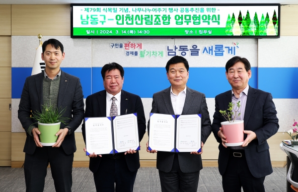 [금요저널] 인천시 남동구는 인천산림조합과 제79회 식목일 기념 ‘나무 나누어주기 행사’ 공동 추진을 위한 업무협약을 맺었다고 15일 밝혔다.