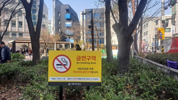 금연구역인 어린이공원에 더해 그 주변까지 금연구역으로 확대한 것은 서초구가 전국 최초다.