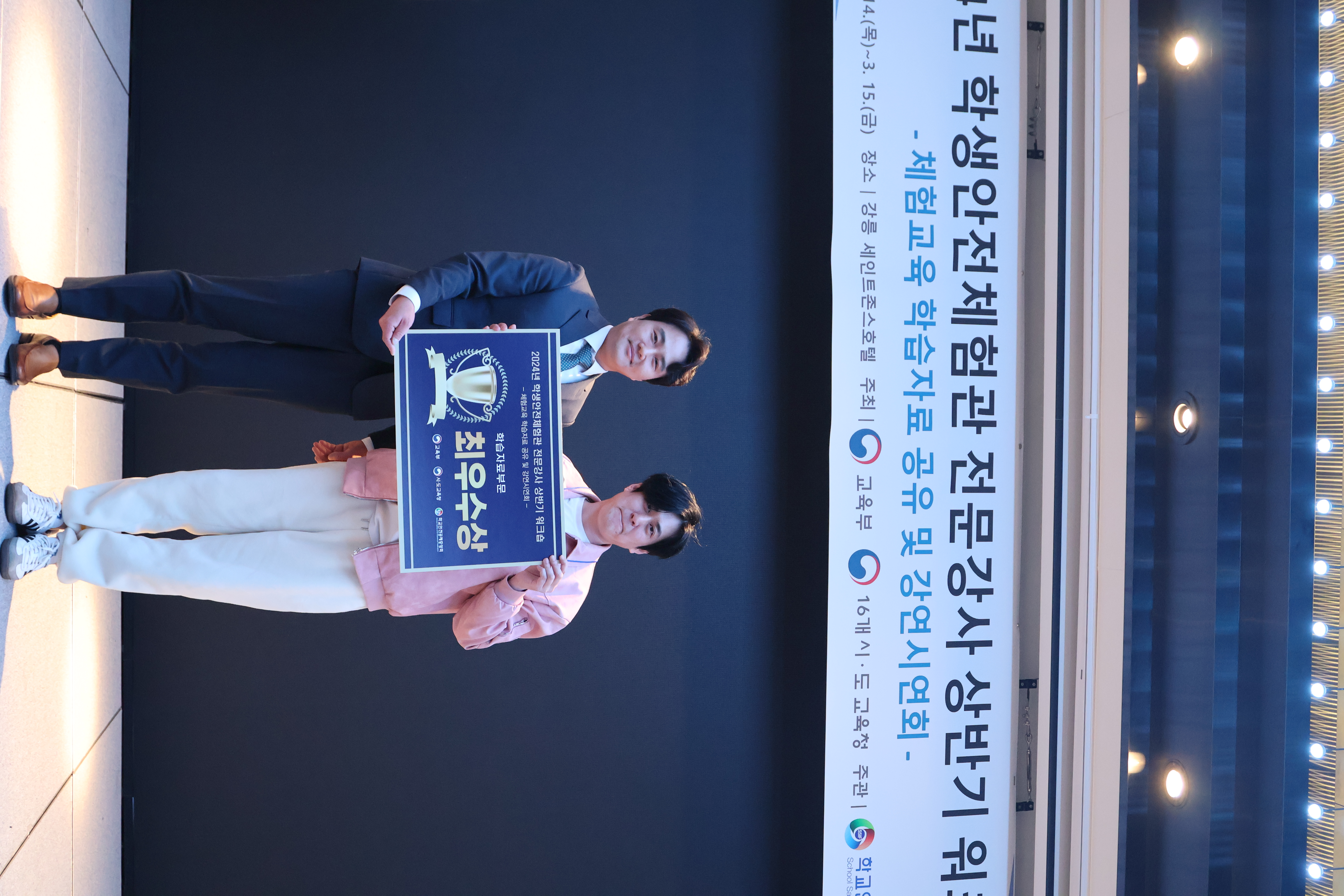 경상북도교육청 의성안전체험관(관장 변권수)은 학교안전공제중앙회에서 주관하는 “2024년 학생안전체험관 전문강사 워크숍”에 참석하여 학습자료 부분 교육부장관 표창(최우수상)을 수상했다고 밝혔다.