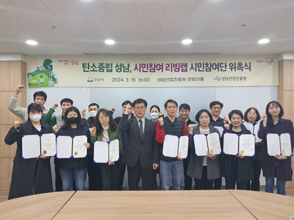 [금요저널] 성남산업진흥원은 2024년 ‘탄소중립 성남 시민참여 리빙랩’에 참여할 ‘시민참여단’을 모집하고 위촉식을 개최했다고 18일 밝혔다.