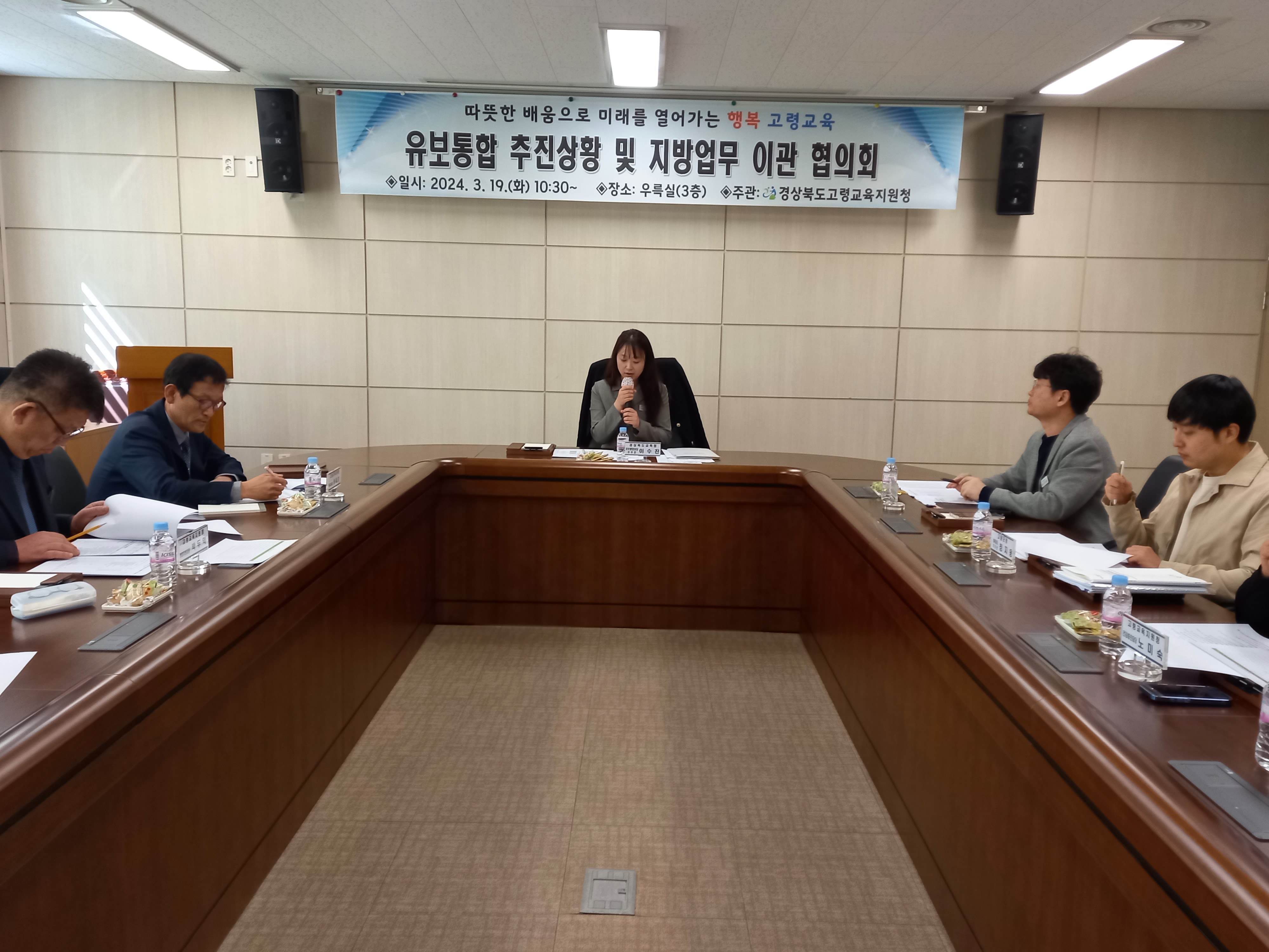 경상북도고령교육지원청(교육장 김호상)은 3월 19일(화) 10:30부터 고령교육지원청 우륵실에서 유보통합 추진 및 지방업무 이관 협의회를 개최하였다.