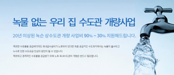 지원 대상은 주택의 급수관이 노후돼 녹물이 나오거나 수압 저하 등으로 수돗물 사용에 불편을 겪고 있는 가구다.