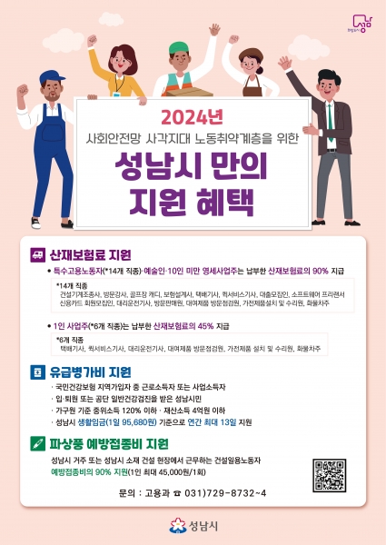 한편 성남시는 사회안전망 사각지대 노동취약계층을 위한 유급 병가비 지원, 파상풍 예방접종비 지원 사업도 실시하고 있다.