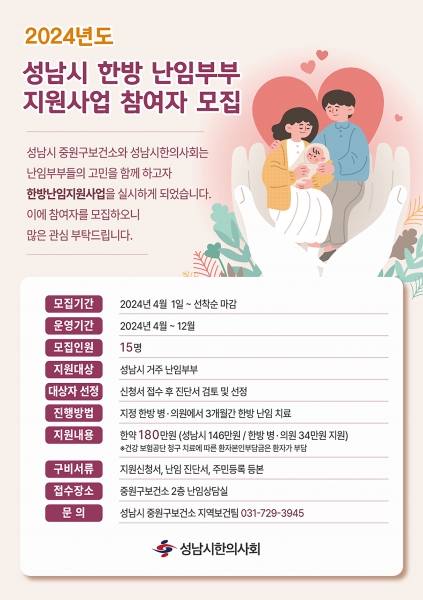 이 사업은 임신이 어려운 난임 부부를 돕기 위해 성남시한의사회와 협업 추진한다.