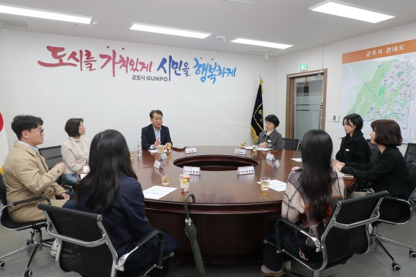 [금요저널] 군포시는 지난 28일 시장집무실 회의실에서 ‘친절공무원과의 간담회’를 개최했다고 밝혔다.