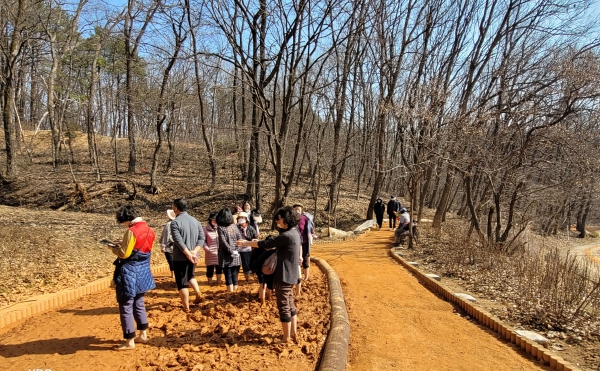 시는 오는 7월까지 산성공원, 희망대공원, 황송공원, 화랑공원, 이매동 공공공지 등 5곳에 맨발 황톳길을 추가 조성한다.