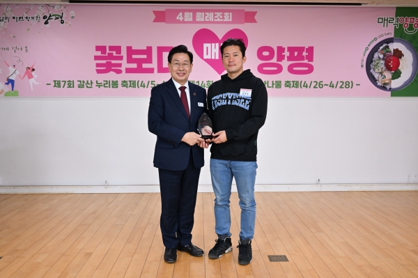 전진선 군수는 “양평군의 새로운 홍보대사가 되신 김대호 아나운서를 진심으로 환영하고 축하한다”며 많은 분들에게 사랑받고 있는 김대호 홍보대사께서 양평을 알리는 큰 역할을 해주시길 부탁한다“고 말했다.