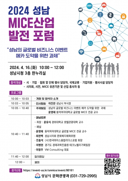 [금요저널] 성남시는 오는 4월 16일 오전 10시 시청 3층 한누리에서 ‘마이스 산업 발전 방안 모색을 위한 포럼’을 연다.