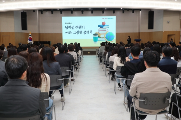 이번 성과공유회에서는 문화예술과 이해선 그림책꿈마루팀장이 남이섬 소개 및 성공비결을 소개하고 그림책꿈마루에 접목할 수 있는 적용방안에 대해 발표했다.
