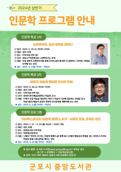 군포시 중앙도서관, 2024년 상반기 인문학 프로그램 운영