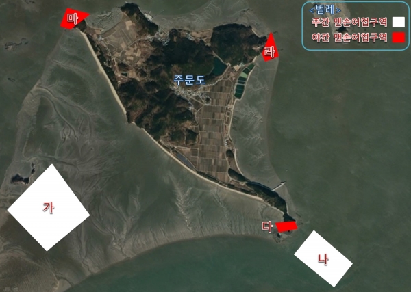 야간조업 허용 구역은 전년과 동일하게 주문도 육상과 인접한 소라가 많이 서식하는 3개 구역이며 기존 구역도 여전히 주간 조업이 가능하다.