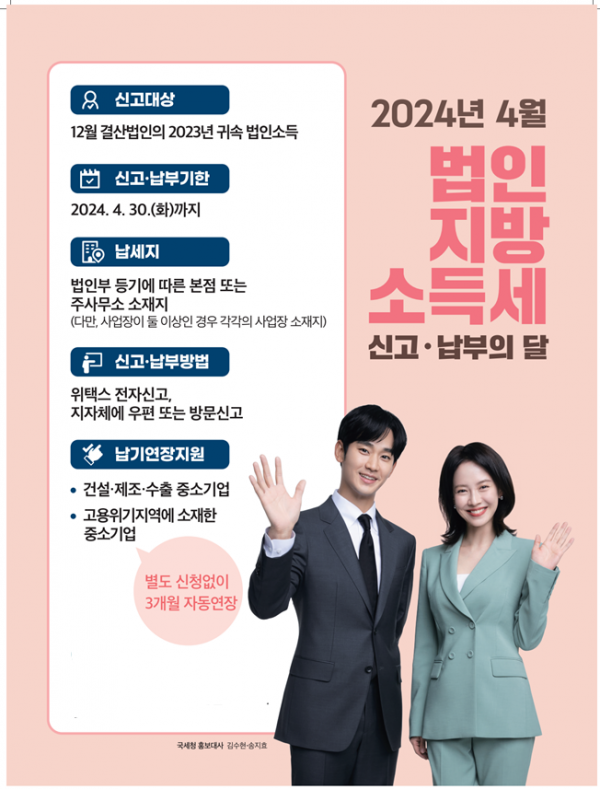 특히 올해에는 복합 경제위기 등으로 경영에 어려움을 겪고 있는 건설·제조·수출 중소기업 등을 지원하기 위해 법인 지방소득세 납부 기한을 3개월 직권 연장한다.