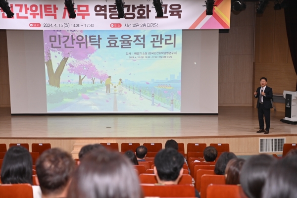 16일 하남시에 따르면 시는 15일 시청 별관 2층 대강당에서 배성기 한국민간위탁경영연구소 소장을 초빙해 ‘민간위탁 효율적 관리’를 주제로 민간위탁 사무 역량 강화 교육을 진행했다.