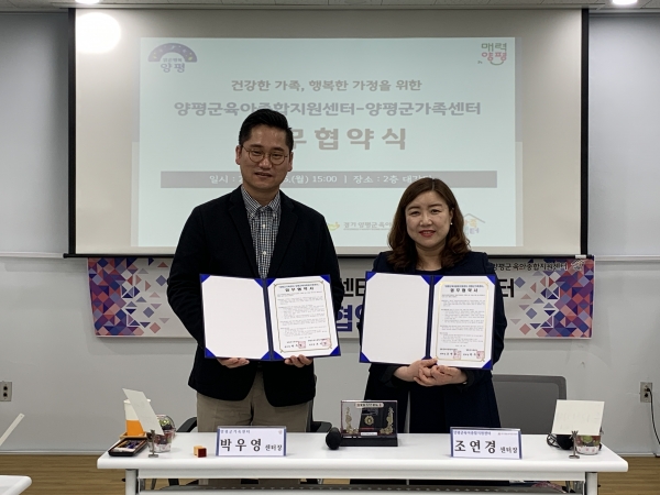 [금요저널] 양평군육아종합지원센터는 지난 15일 양평군 관내 영유아 및 양육자의 복지서비스 제공을 위해 양평군가족센터와 업무 협약을 체결했다고 밝혔다.