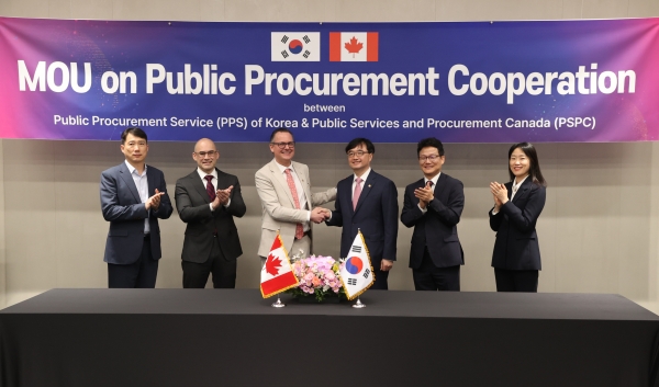 [금요저널] 조달청과 캐나다 공공서비스조달부는 16일 경기도 일산 킨텍스에서 정부조달 분야 상호 협력을 위한 업무협약을 체결했다.