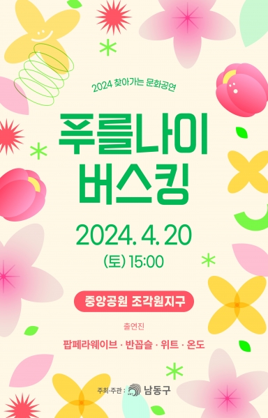 [금요저널] 인천시 남동구는 오는 20일 오후 3시 간석동 중앙공원 조각원지구 바닥분수 앞에서‘푸를나이 버스킹’공연을 개최한다고 16일 전했다.