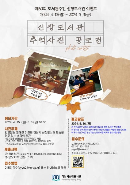 하남시, ‘추억을 담은 신장도서관’ 사진 공모전 개최