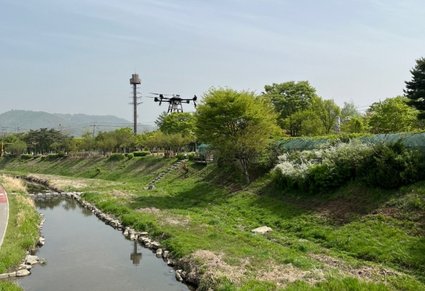 [금요저널] 과천시는 올해 빈대, 벼룩, 모기 등 위생해충 매개 감염병 예방을 위해 드론을 활용한 ‘스마트방역 시범사업’을 실시하는 가운데, 17일 모기가 발생하기 쉬운 양재천변과 거주용 비닐하우스 밀집지역인 꿀벌마을 등 방역사각지역 약 60,000㎡을 20분만에 소독을 완료했다.