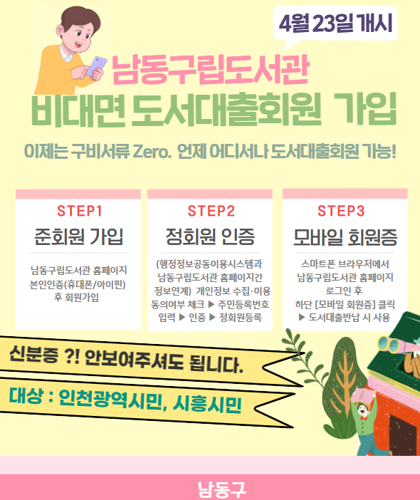 남동구립도서관, 비대면 도서 대출회원 가입 서비스 개시