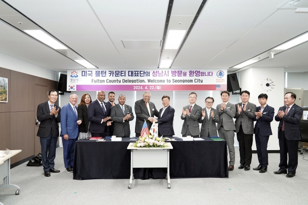 [금요저널] 성남시는 미국 조지아주 풀턴 카운티 대표단이 우호 교류 의향서 교환을 위해 시청을 방문했다고 22일 밝혔다.