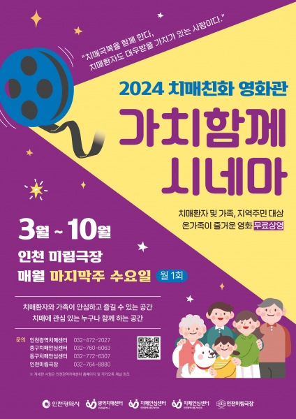 가치함께 시네마는 치매당사자와 가족들이 안심하고 문화생활을 즐길 수 있는 공간으로 매월 마지막주 수요일에 중구, 동구, 광역 치매센터와 함께 무료로 운영된다.