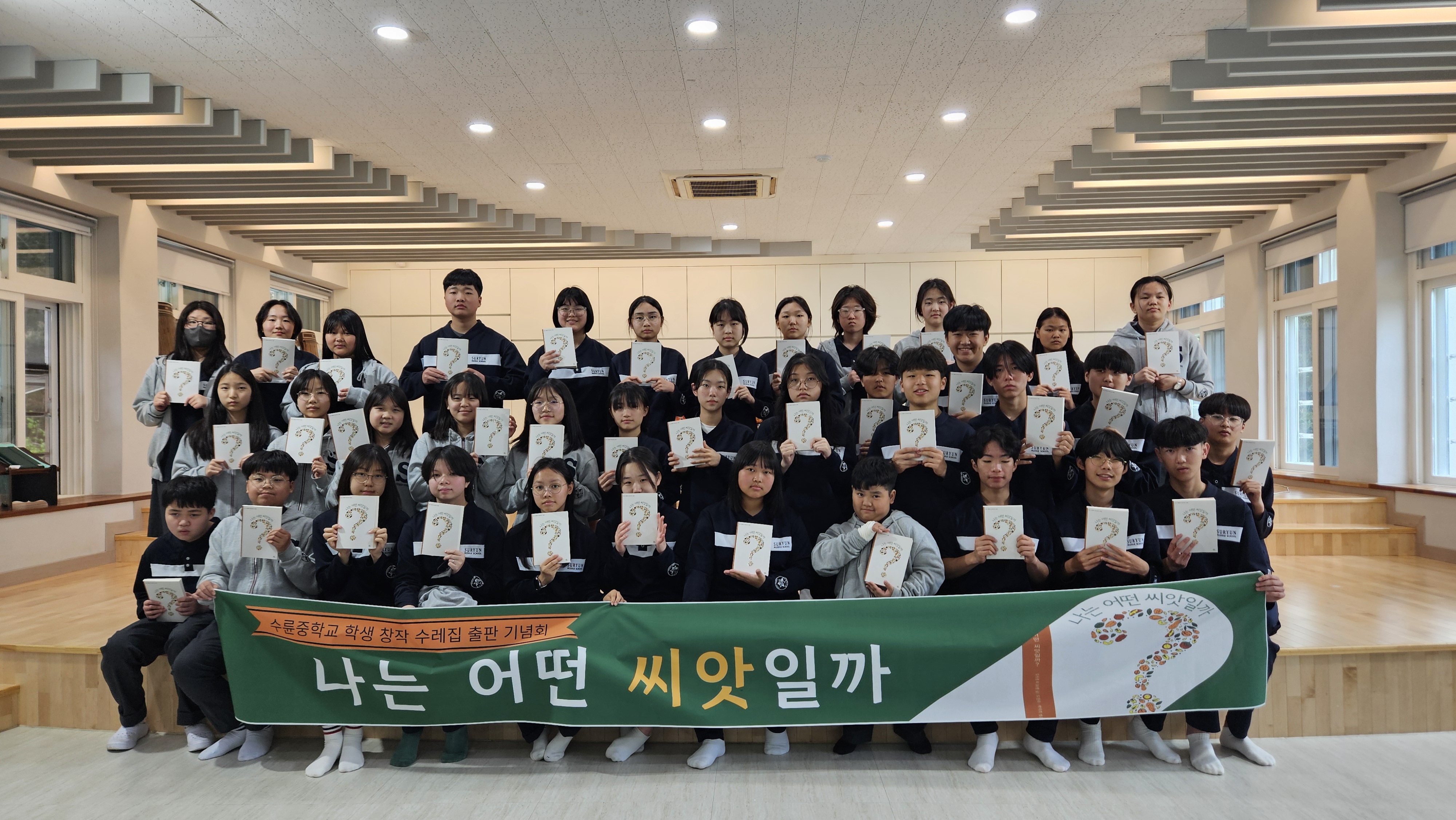 수륜중학교(교장 송경미)는 전교생 31명의 작품을 모두 수록한 학생 창작 번역 시집「나는 어떤 씨앗일까(도진숙, 박덕희 엮음 / 브로콜리숲, 2024.4.20.)」을 출판하였다.