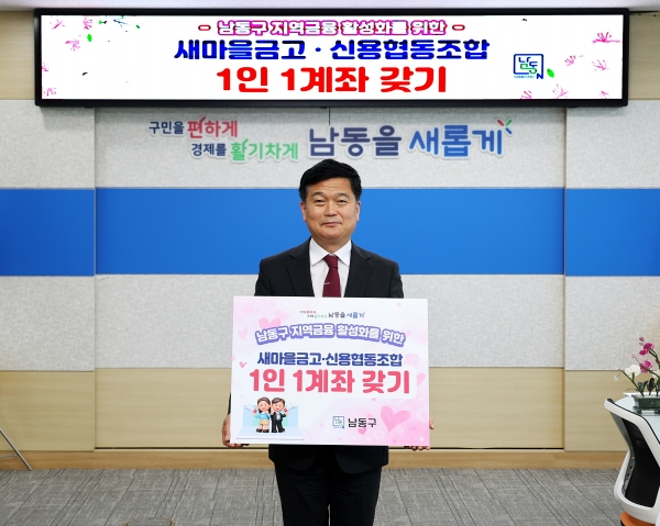 [금요저널] 인천시 남동구는 상생 성장과 지역경제 활성화를 도모하기 위해 관내 본점을 두고 있는 새마을금고와 신용협동조합을 대상으로 ‘1인 1계좌 갖기’ 릴레이 챌린지를 시작한다고 24일 밝혔다.