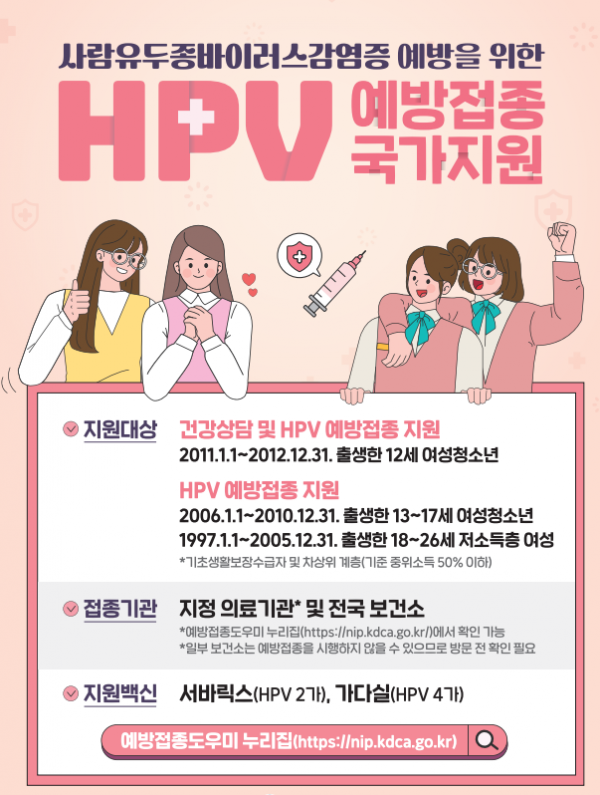 2006년생 여성청소년과 1997년생 저소득층 여성은 올해 12월 말까지만 무료 접종이 가능하다.