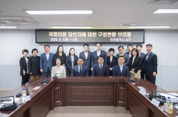 [금요저널] 인천 서구는 지난 7일부터 9일까지 지역 국회의원 당선자에 대한 구정 현황 브리핑을 지역구별로 개최하고 주요 현안 사항을 보고하며 지역 현안을 심도 있게 토의하는 시간을 가졌다고 밝혔다.