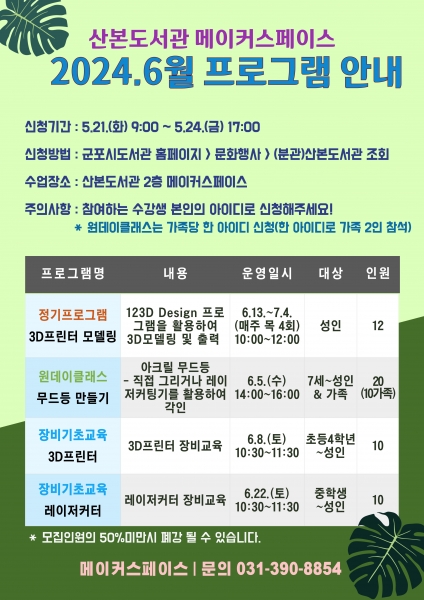 군포시 산본도서관 6월 메이커스페이스 프로그램 운영