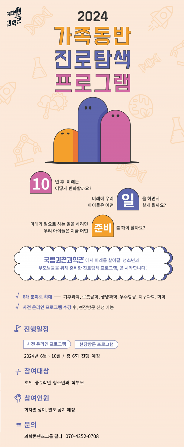 [금요저널] 국립과천과학관은 작년에 이어 올해 6월부터 10월까지 청소년과 학부모를 대상으로 ‘2024 가족동반 진로탐색 프로그램’을 운영한다.