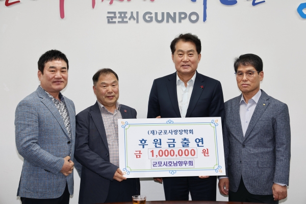 [금요저널] 군포시 호남향우회와 영남향우회가 16일 군포사랑장학회에 장학금을 기탁했다.