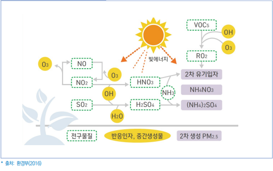 미세먼지는 자동차 매연, 소각시설에서 발생하는 연기 등 ‘1차 미세먼지’와 가스상 오염물질이 공기 중의 다른 물질과 물리화학 반응을 일으켜 발생하는 ‘2차 미세먼지’로 나누어진다.