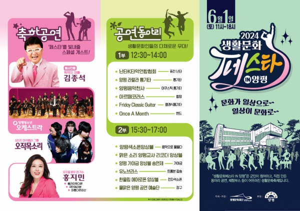 [금요저널] 양평문화재단이 주최하는 ‘2024 생활문화페스타 in 양평’이 오는 6월 1일 토요일 양평생활문화센터 앞에서 개최된다.