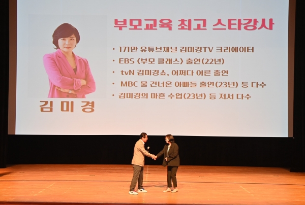 하남시는 23일 하남문화예술회관 검단홀에서 시민 등 800여명이 모인 가운데 열린 ‘2024년 하남명사특강’에 김미경 대표를 초청해 ‘자존감 있는 부모, 성공하는 아이’를 주제로 한 부모교육과 관련한 특강을 진행했다.