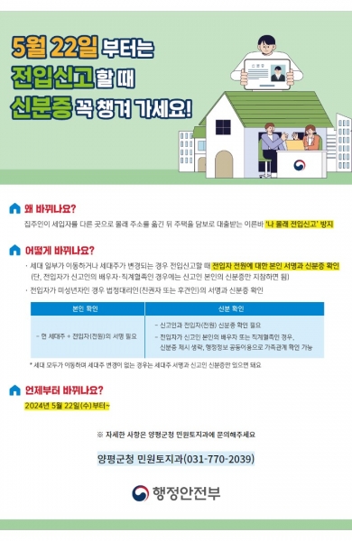 군 관계자는 “신분확인 절차 강화로 전입신고 시 시민들이 현장에서 불편을 겪지 않도록 관련 개정 내용을 널리 홍보하고 있다”고 말했다.