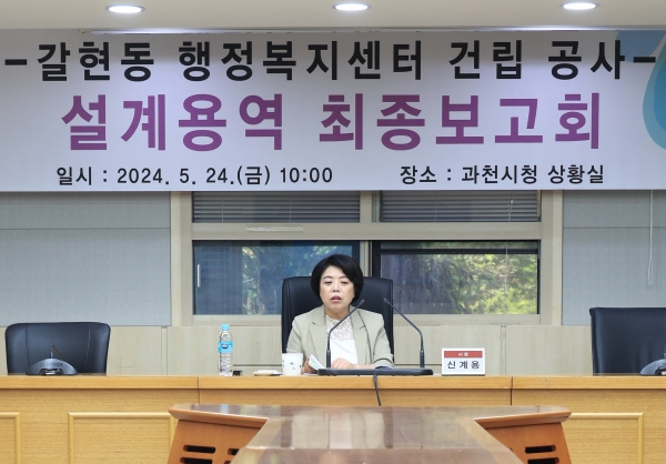 [금요저널] 과천시는 24일 시청 상황실에서 신계용 과천시장과 관계 공무원 등이 참석한 가운데, ‘갈현동 행정복지센터 건립 공사 설계용역 최종보고회’를 개최했다.