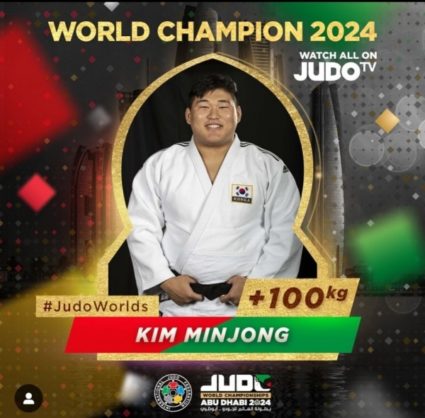 [금요저널] 양평군청 직장운동경기부 김민종이 19일부터 24일까지 아랍에미레아트 아부다비 무바달라 아레나에서 개최된 2024 세계유도선수권대회에 출전해 체급 정상에 올랐다.