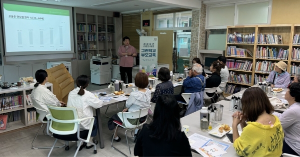 이번 ‘청정자연 아토피 제로 그린 학교’ 부모교육은 양동초와 양동어린이집 학부모 총 20명을 대상으로 △우울증 예방교육 △환경 속에 사는 미생물 이론 교육 및 친환경 세제 실습을 실시했다.